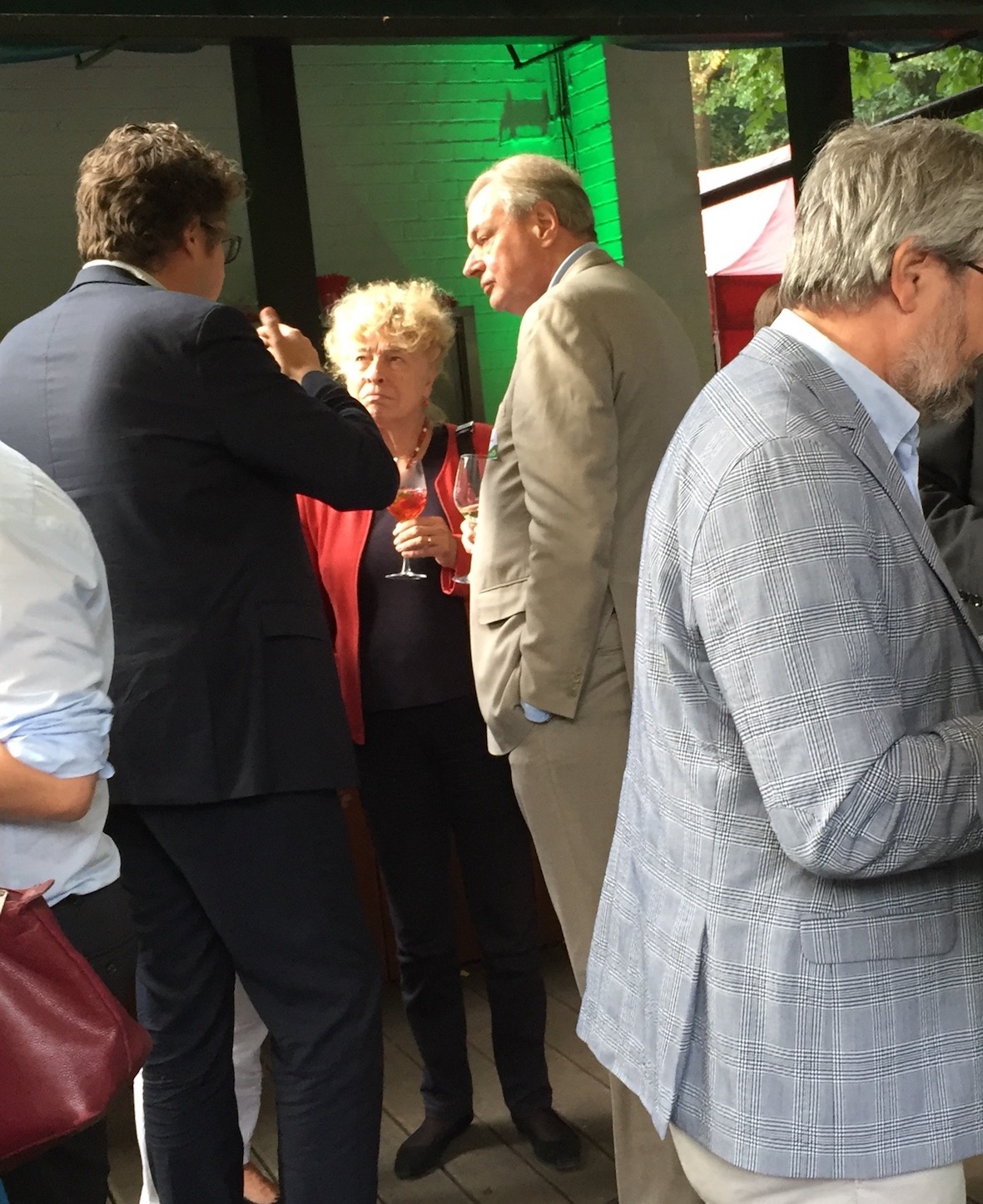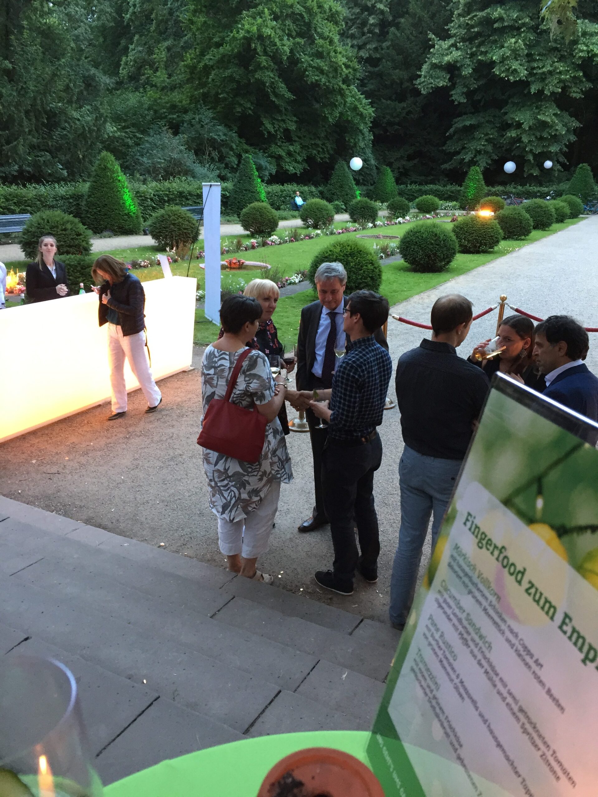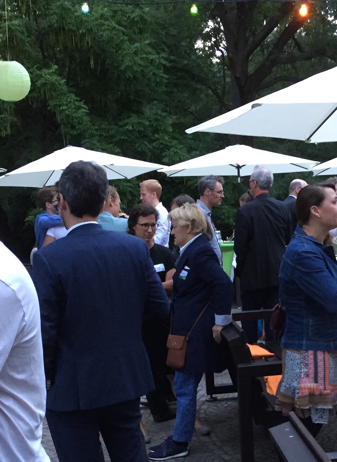 Im Teehaus des Englischen Gartens übernahmen Katrin Göring-Eckhard und Toni Hofreiter die – kurzen – Begrüßungsreden. Es war ein lauschiger Abend, überall standen Gäste in kleinen Grüppchen zusammen, es wurde viel genetzwerkt – und auch Antonia und ich waren fleißig dabei. Seit dem Seniorentag in Dortmund haben wir nämlich die Idee, eine große Pflege-Veranstaltung zu machen. Die nicht nur über Pflegenotstand jammert, sondern auf der konkrete Vorstellungen entwickelt werden sollen zum Thema interkulturelle Pflege, Pflege für ältere Schwule und Lesben, Pflege mit Herz und digitale Entwicklungen im Pflegebereich.