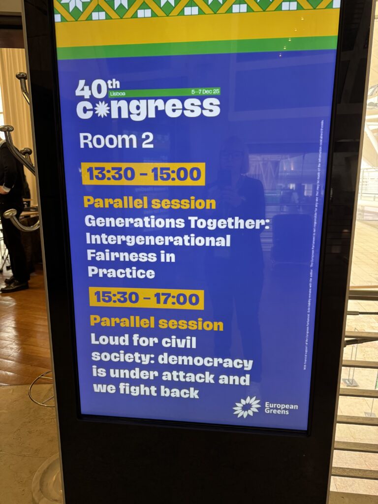 Leichter Nieselregen bei der Ankunft am hypermodernen Bahnhof Oriente, ringsum Hochhäuser, Hotels, Shoppingcenter, üppigste Christbaumdekoration und blinkende Lichter – sind wir wirklich in Lissabon? Aber ja, der 40. EGP Congress findet vom 5.-7. Dezember auf dem Gelände des ehemaligen Expogeländes statt, direkt am Ufer des Tejo. Titel des Kongresses: Laut für die Menschen, den Planeten und für Europa! Wir European Green Seniors (EGS) sind dabei und haben einen Stand in der großen Halle vor den Sitzungsräumen: Wir wollen neue Mitgliedsländer gewinnen!